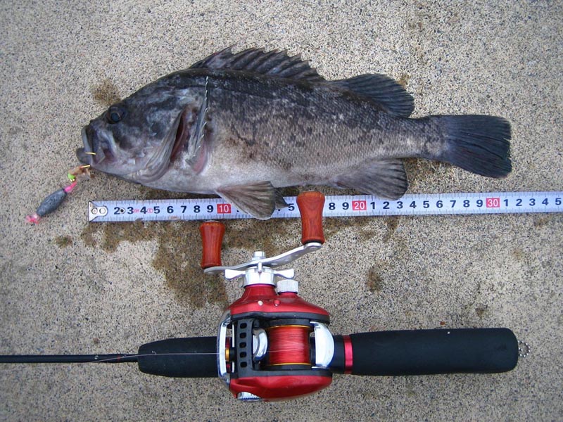 エサはサンマの切身、この日はカツオの切身を使用しました。